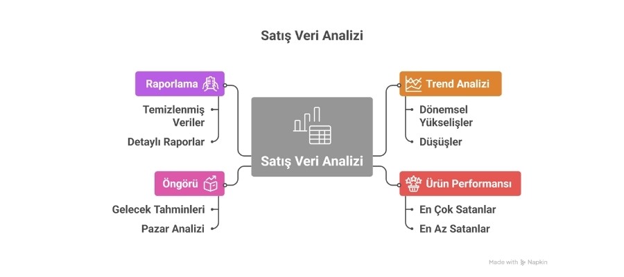 Verileri özetler, trendleri bulur, ürün performanslarını karşılaştırır ve sonuçları anlaşılır hale getirir.