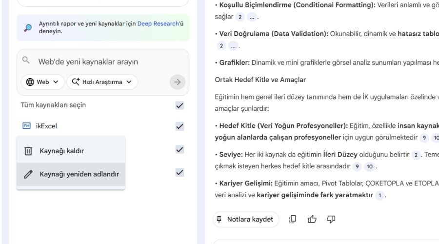 NotebookLM’de kaynakları yeniden adlandırmak, uzun ve karmaşık dosya isimlerini sadeleştirerek daha hızlı çalışmanızı sağlar ve her soruda doğru kaynağa odaklanmayı kolaylaştırır.
